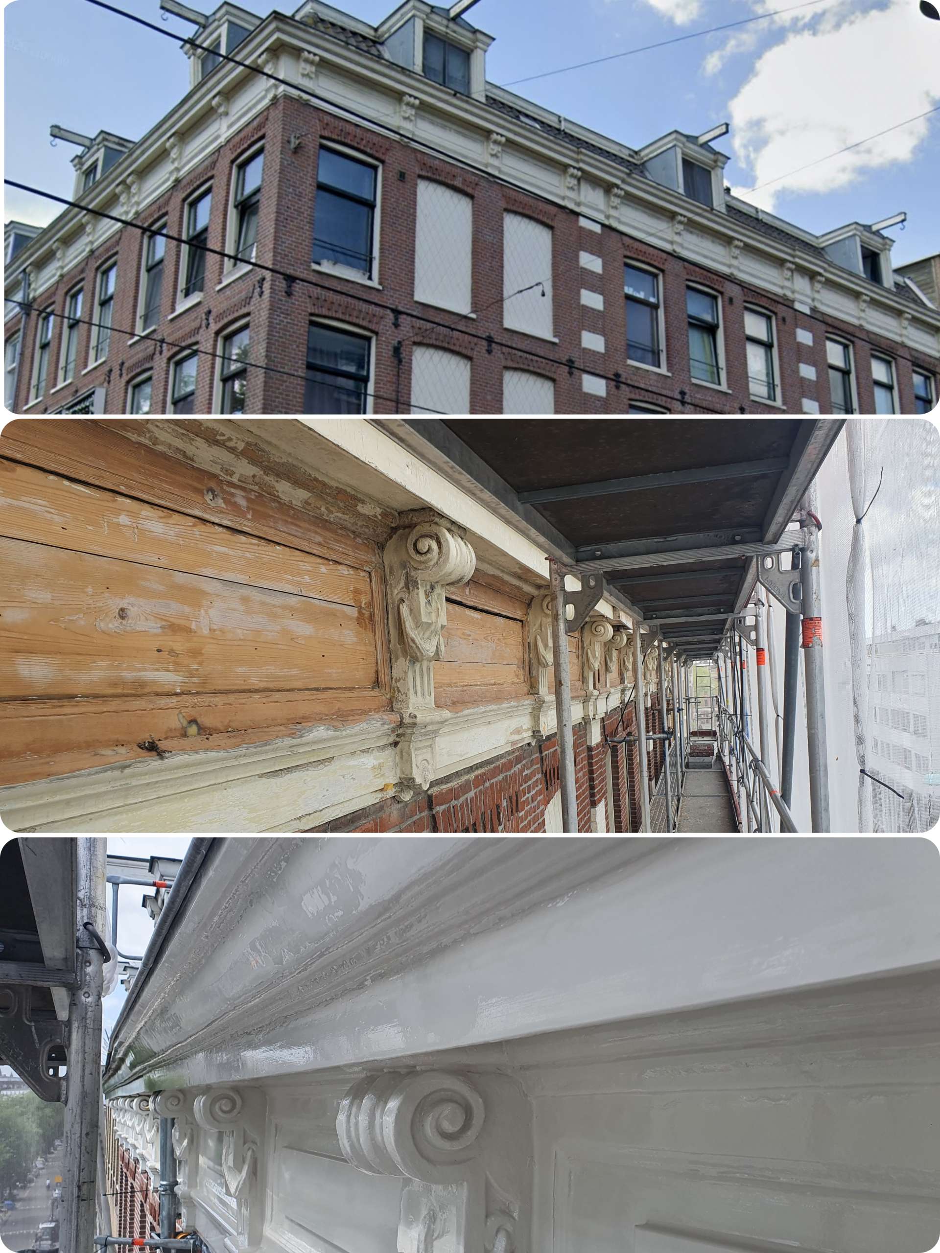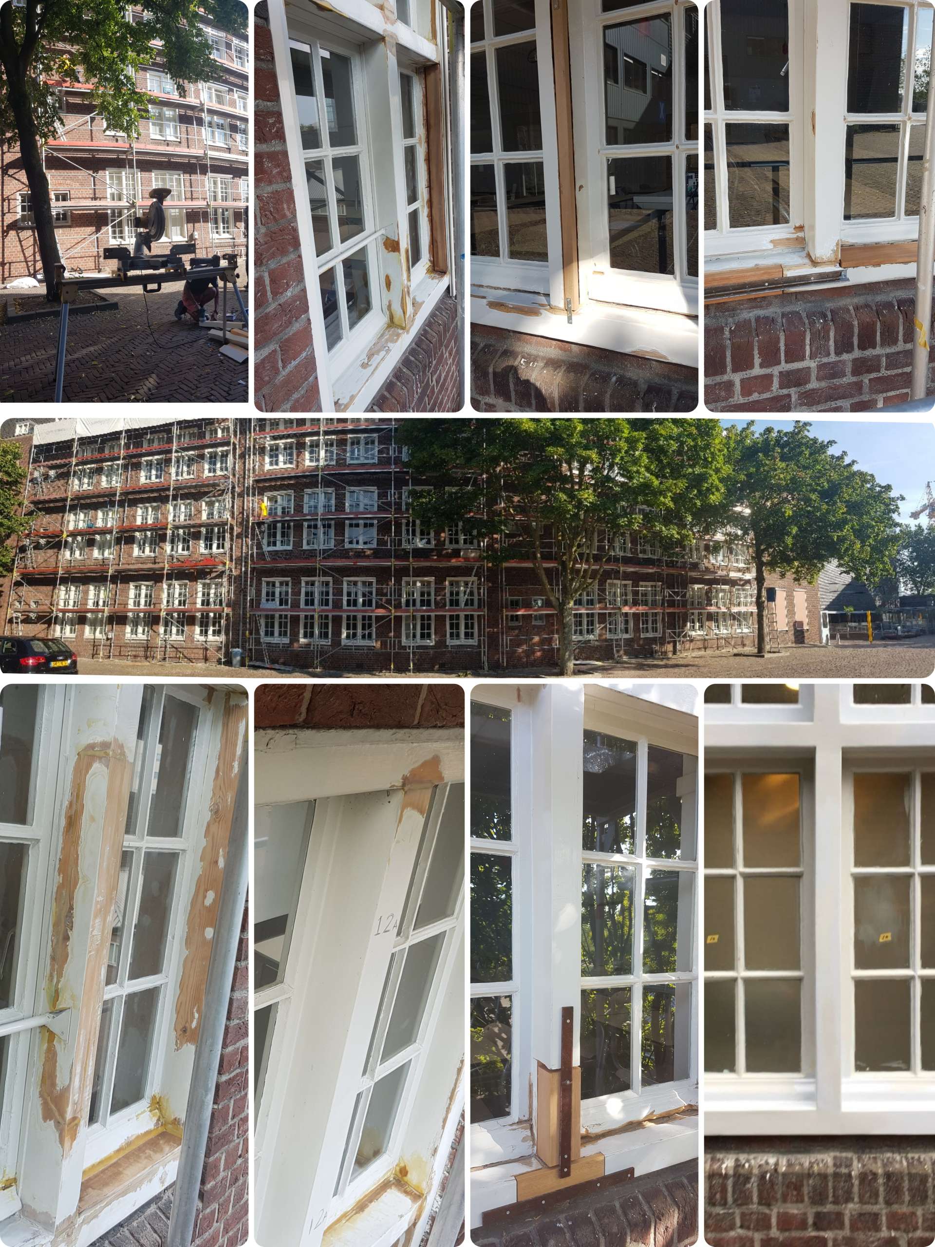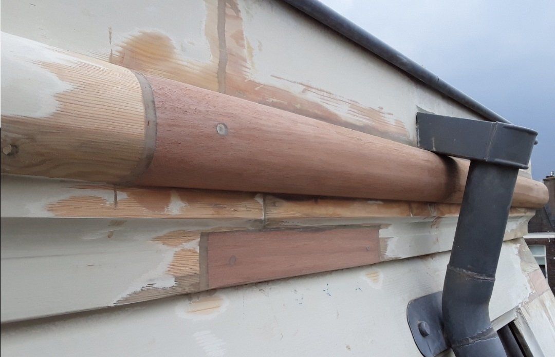 Hetgeen wat rot is zagen we uit en maken dit in de werkplaats exact na.. Vervolgens plaatsen we het gezonde hout terug, waar u helemaal niks meer van zult zien. Dit noemen we een deelvervanging.
